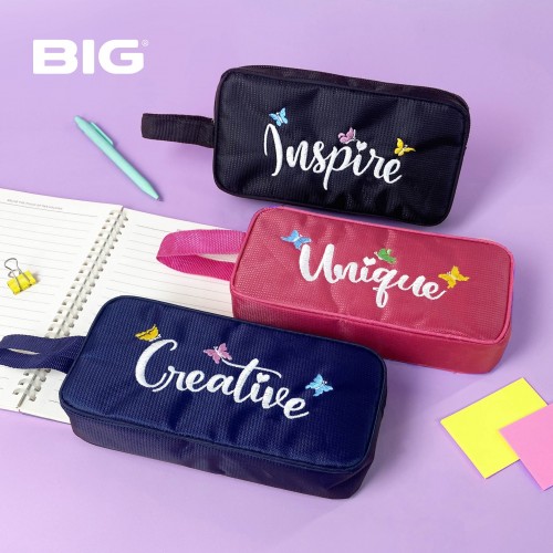 • Pencil case with an eye-catching embroidered text design (Creative, Unique, Inspire)